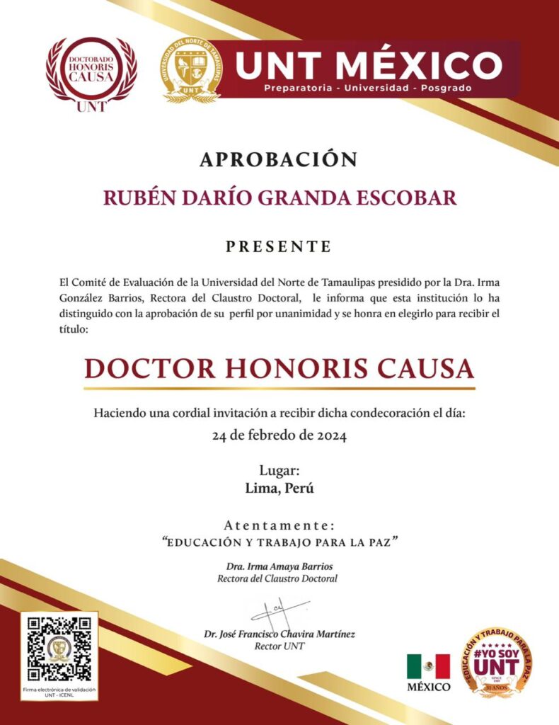 - Miembro Colegio Oficial Internacional Doctores. Categoría Doctorado Honoris Causa. Aprobación del Directorio, julio 16 de 2024.